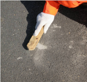 3、利用平板夯将模具压入软化的沥青路面(深度约8mm)。